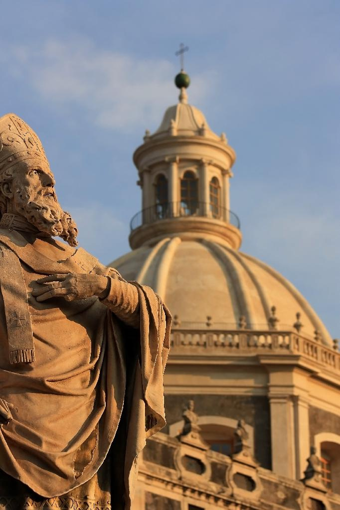 Elutazás Budapest-Liszt Ferenc repülőtérről menetrendszerinti repülőjárattal Cataniába, majd autóbuszunkkal Catania belvárosába, Bellini színház csodálatos, neoreneszánsz stílusú épületéhez érkezünk. Itt kezdjük gyalogos sétánkat az Egyetem, Szent Ágota katedrális, Elefántos kút és a via Giuseppén át a lávakőből épült Ursino kastélyig, mely az 1669-es vulkánkitörés előtt még a tengerparton állt (ezen programrész a repülő menetrend függvényében az utolsó napon is megvalósulhat). Visszaszállunk autóbuszunkba, és a Taormina környéki szállodánkba érkezünk, ahol 3 éjszakát töltünk. Repülő menetrend függvényében ismerkedünk Taormina hangulatával.