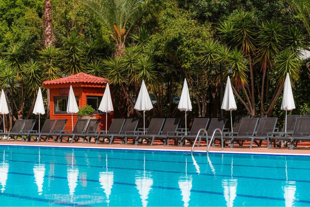 A központ közelében található népszerű szálloda két épületből áll, egy gondozott kert közepén. A kb 150 m-re lévő homokos/kavicsos strand gyalog kényelmesen megközelíthető. Számos szórakozási lehetőséget kínál gyerekeknek és felnőtteknek. Minőségi szolgáltatásaival minden korosztály számára kitűnő választás.
