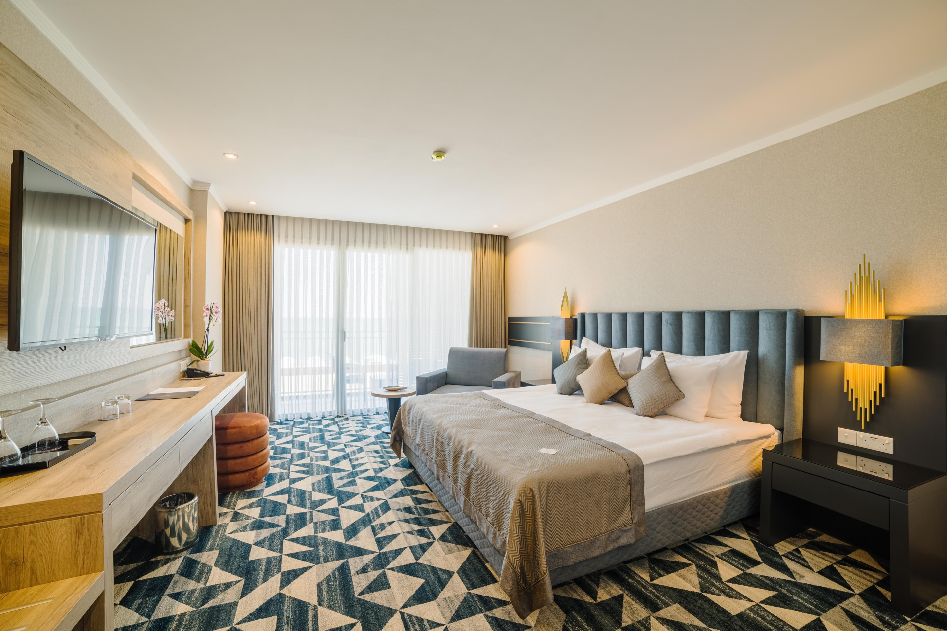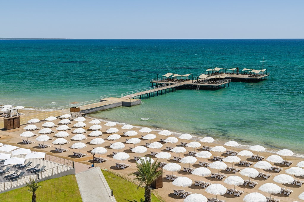 Újonnan nyílt 5 csillagos design-szálloda tágas és modern szobákkal, Famagusta központjától kb. 15 percre. A szálloda a sziget egyik legszebb, kb. 1 km hosszú strandjánál fekszik. A világkonyha gasztronómiai ínyencségei, változatos animációs programok, és Ultra All Inclusive program garantálják a pihentető nyaralást. Elhelyezkedése miatt kitűnő kiindulópont Varosha, a szellemváros felfedezésére, amely a múltban a Földközi-tenger egyik legvonzóbb helyszíne volt, és 48 év után részben újra megnyitotta kapuit a turisták előtt.