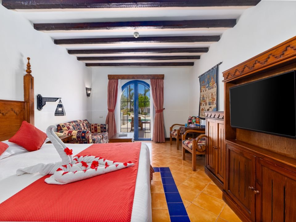 A THE GRAND MAKADI 302 szobával várja vendégeit Hurghadától 30 km-re délre. Egy gyönyörűen kialakított parti sétányon keresztül közelíthetőek meg a szomszédos RED SEA HOTELek, mint a MAKADI SPA, a GRAND WATERWORLD MAKADI és a MAKADI PALACE szálloda. A HOTELT TELJESKÖRŰEN FELÚJÍTOTTÁK , 2025.06.20-ÁN NYITOTT KI ISMÉT! A HOTELBEN BEFEJEZŐDTEK A FELÚJÍTÁSI MUNKÁLATOK (GÖRÖG ÉTTEREM NEM NYITOTT MÉG KI), ÍGY A SZÁLLODA VENDÉGEI 2025.07.12-TŐL NEM JOGOSULTAK MÁR A TESTVÉRSZÁLLODÁK SZOLGÁLTATÁSAINAK HASZNÁLATÁRA! MEGÚJULTAK A MEDENCÉK, FŐÉTTEREM, LOBBY ÉS TERASZ RÉSZEK! A szálloda saját tengerparti stranddal rendelkezik, ahol a korallzátonyhoz egy kb 75 méter hosszú stégen keresztül juthatunk el és amelynek végén elmerülve már gyönyörködhetünk is a páratlan élővilágban (strandcipő javasolt). A szállodakomplexum számos, egymással összekötött épületből áll. A gyönyörűen kialakított lobbyban található a recepció, egy kis üzlet, a lobby bár és egy nagy teraszos bár, csodálatos rálátással a különlegesen buja kertre, valamint a fűthető medencére. The Grand Makadi szállodát kulináris sokszínűség jellemzi; itt kedvére fogyaszthat nemzetközi ételeket, olasz specialitásokat, grillezett szendvicseket és keleti különlegességeket. A lobby bár és a szobaszervíz (térítés ellenében) a nap 24 órájában elérhető. A medencénél és a strandon a napágyak, napernyők és matracok térítésmentesen használhatóak. A Grand Waterworld Makadi területén található csúszdák felár ellenében (napijegy) vehetőek igénybe a vendégek számára. A strandtörülközőket strandtáskában már előre bekészítik a szobákba. A lobbyban és a diszkóban a WiFi használata ingyenes.
