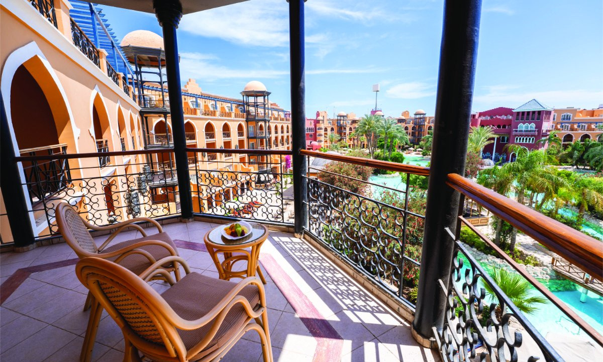 A mór stílusú szálloda 828 szobával rendelkezik és testvérszállodájától, a The Grand Hotel Hurghadától csak egy sétány választja el. A szomszédos Grand Mall-ban számos étterem, kávéház, üzlet és szórakozási lehetőség várja az idelátogató vendégeket. A The Grand Hotel kb. 150 méterre lévő strandja a The Grand Resort vendégei számára is használható. A szálloda széleskörű felújításon esett át az elmúlt években, megújultak többek között az éttermek, közösségi terek, medencék. Az ízlésesen kialakított lobbyban recepció és éjjel-nappal nyitva tartó lobby bár áll a vendégek rendelkezésére. A létesítmény 2 fő-, 3 á la carte- és a Grand Mallban több étteremmel rendelkezik, emellett számos bár is igénybe vehető. A stílusos édesvízi medencénél 2 snack bár, 1 medence étterem, valamint az élőzenés PERGOLA várja a vendégeket. A szállodában konferenciaterem is található. Vízivilága 3 nagy édesvízi medencéből és 2 gyerekmedencéből áll, amiből télen az egyik felnőtt és az egyik gyerekmedence fűthető. A medencénél és a strandon (The Grand Hotel) a napágyak, napernyők és matracok térítésmentesen vehetőek igénybe. A strandtörülközőket strandtáskában már előre bekészítik a szobákba. A The Grand Hotel partján található csúszda térítésmentesen vehető igénybe a vendégek számára. Grand Mallban különböző showműsorok, éttermek, bárok, internet- és biliárd, kávézó, valamint mini piac áll még a vendégek rendelkezésére (minden szolgáltatás térítés ellenében).