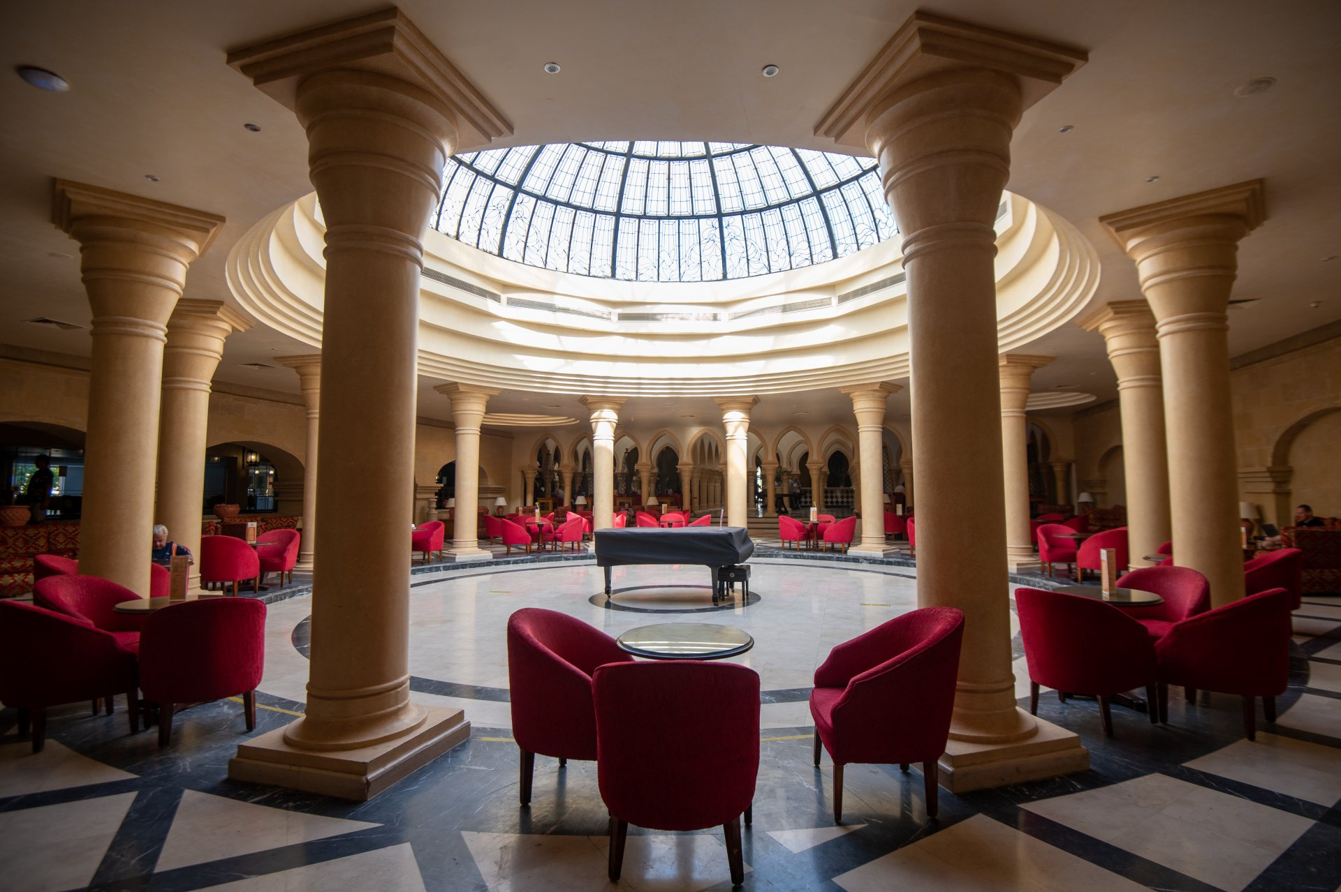 A mór stílusú szálloda 828 szobával rendelkezik és testvérszállodájától, a The Grand Hotel Hurghadától csak egy sétány választja el. A szomszédos Grand Mall-ban számos étterem, kávéház, üzlet és szórakozási lehetőség várja az idelátogató vendégeket. A The Grand Hotel kb. 150 méterre lévő strandja a The Grand Resort vendégei számára is használható. A szálloda széleskörű felújításon esett át az elmúlt években, megújultak többek között az éttermek, közösségi terek, medencék. Az ízlésesen kialakított lobbyban recepció és éjjel-nappal nyitva tartó lobby bár áll a vendégek rendelkezésére. A létesítmény 2 fő-, 3 á la carte- és a Grand Mallban több étteremmel rendelkezik, emellett számos bár is igénybe vehető. A stílusos édesvízi medencénél 2 snack bár, 1 medence étterem, valamint az élőzenés PERGOLA várja a vendégeket. A szállodában konferenciaterem is található. Vízivilága 3 nagy édesvízi medencéből és 2 gyerekmedencéből áll, amiből télen az egyik felnőtt és az egyik gyerekmedence fűthető. A medencénél és a strandon (The Grand Hotel) a napágyak, napernyők és matracok térítésmentesen vehetőek igénybe. A strandtörölközőket strandtáskában már előre bekészítik a szobákba. A The Grand Hotel partján található csúszda térítésmentesen vehető igénybe a vendégek számára. Grand Mallban különböző showműsorok, éttermek, bárok, internet- és biliárd, kávézó, valamint mini piac áll még a vendégek rendelkezésére (minden szolgáltatás térítés ellenében).