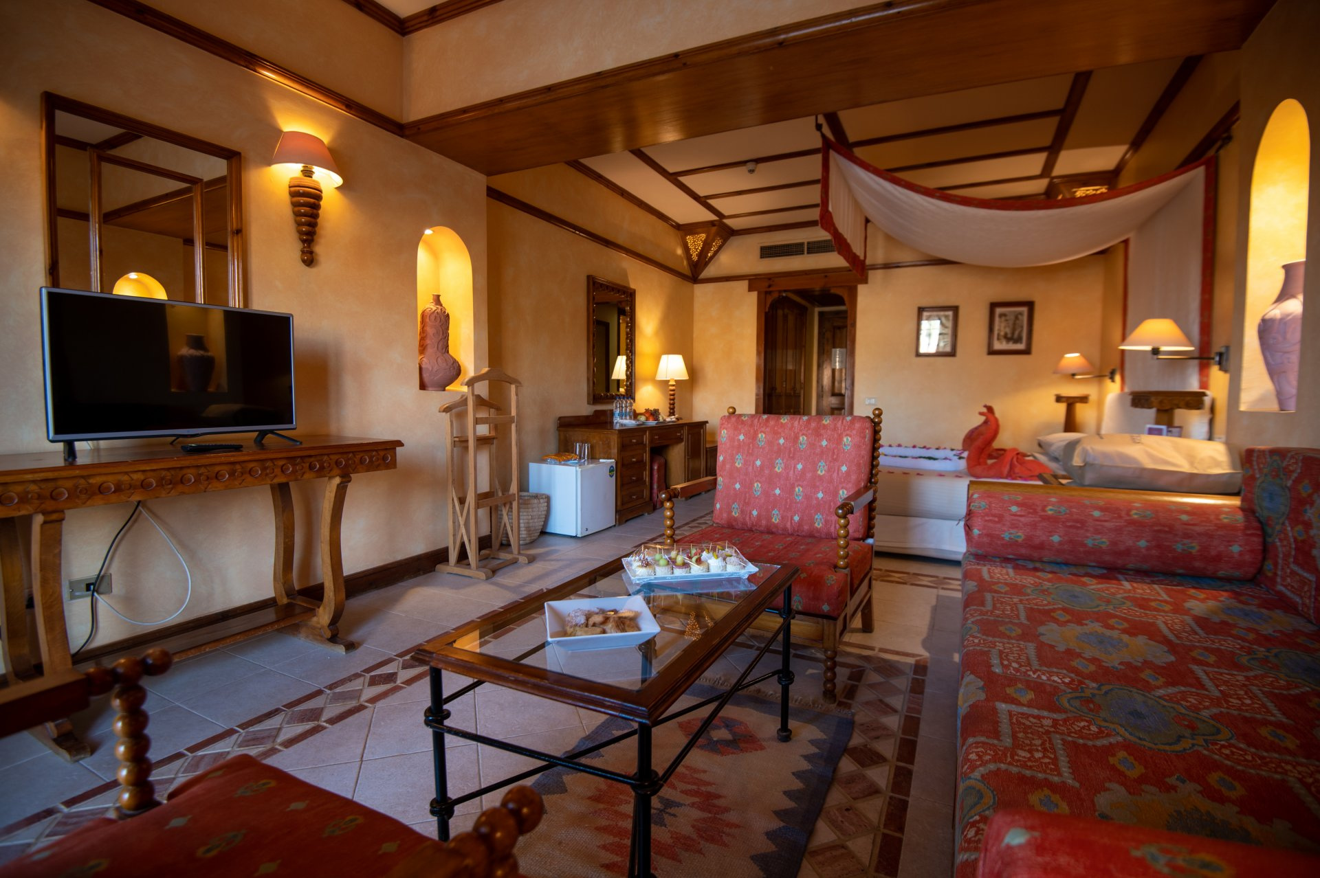 SZOBÁK: mindden szoba igényesen kialakított, fürdővel, WC-vel, légkondicionálóval (szezonális), telefonnal, műholdas TV-vel, mini hűtőszekrénnyel, széffel, hajszárítóval és balkonnal vagy terasszal rendelkezik. A STANDARD szobák (kb. 30 m²) a hotel hátsó részében helyezkednek el és az utcafrontra néznek. A DELUXE szobák (kb. 30 m²) felszereltsége ugyanaz, mint a standard szobáké, viszont a szobák a medencére vagy a kertre néznek. A JUNIOR SUITE szobák valamennyivel nagyobbak (kb. 37 m²), felszereltsége ugyanaz, mint a deluxe szobáké, beépített ülőrésszel rendelkeznek, kilátással a medencékre vagy a kertre. A GRAND SUITE-ek (kb. 52 m²) berendezései hasonlóak, mint a többi szobáé, azonban egy nagyobb hálószobával és egy nappali résszel rendelkeznek, amelyek egy részében a nappali és a hálórész ajtóval van elválasztva. A CSALÁDI SZOBÁK (kb. 45 m²) felszereltsége hasonló, mint a többi szobakategóriáké, azonban 2 külön hálószobával rendelkeznek, amiből az egyik ajtóval van elválasztva.