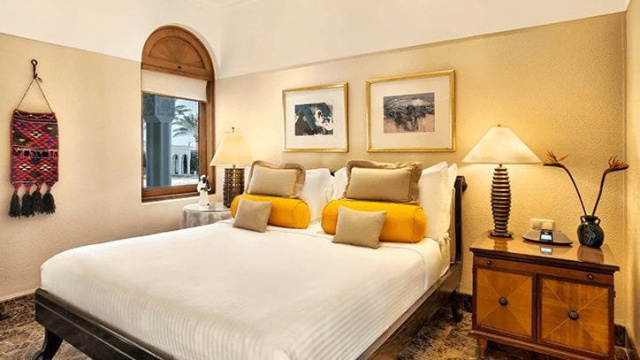 Deluxe lakosztály Kertre nyíló kilátás 53 m² (DS2) Ezek a tágas lakosztályok 53 négyzetméteres belső területtel rendelkeznek, nyugtató színpalettával vannak dekorálva, és természetes fény tölti meg őket. A belső terek között egy king size hálószoba és egy fürdőszoba található, amelyek privát udvari kilátással rendelkeznek. A különálló, kényelmesen berendezett nappali íves ablakokkal rendelkezik, amelyek gyönyörű kertre néző látványt kereteznek. A hagyományos egyiptomi design elemek és papírusz lámpák adják a végső simításokat. További előnyök: - Napi gyümölcsök és virágok. - Tea- és kávéfőzési lehetőség. - Ingyenes 2 palack víz.