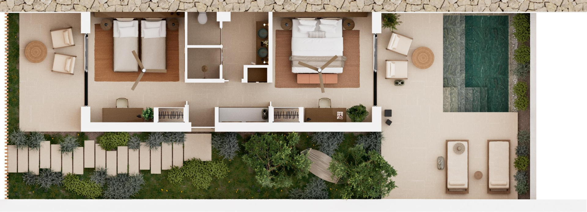 - Beachfront-suitek - tágasabbak, 2 fürdőszoba, terasz saját medencével és közvetlen kijárattal a tengerpartra