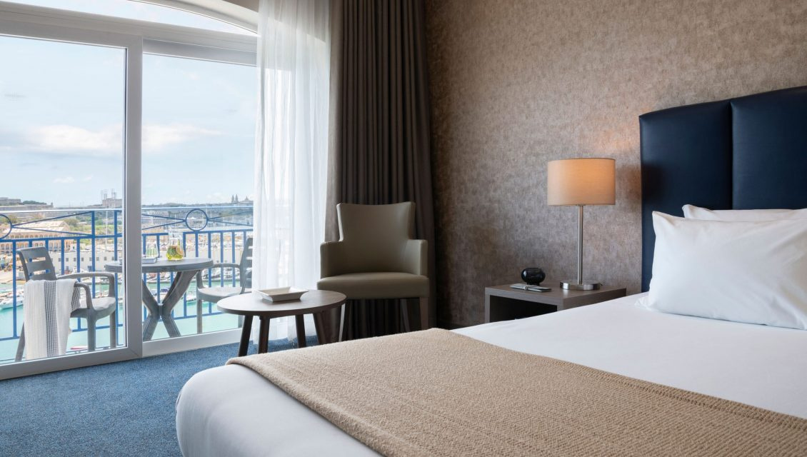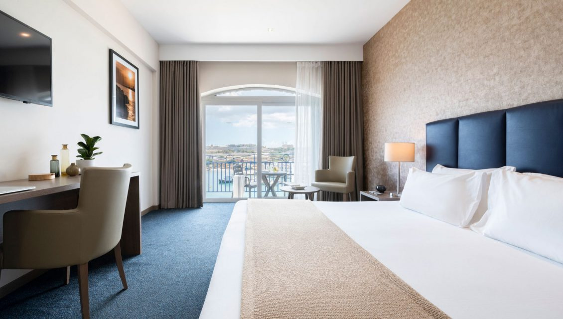Szoba: Szuperior tengerre néző szoba: Tágas erkélyes modern szobák Málta egyik legcsodálatosabb panorámájával büszkélkedhetnek.
