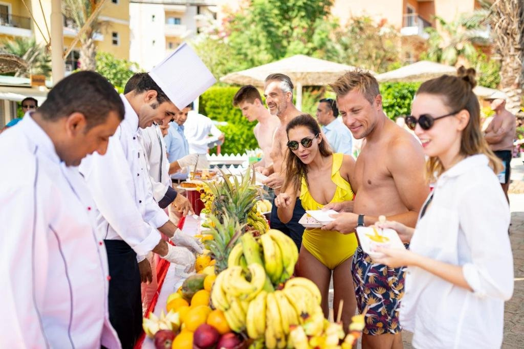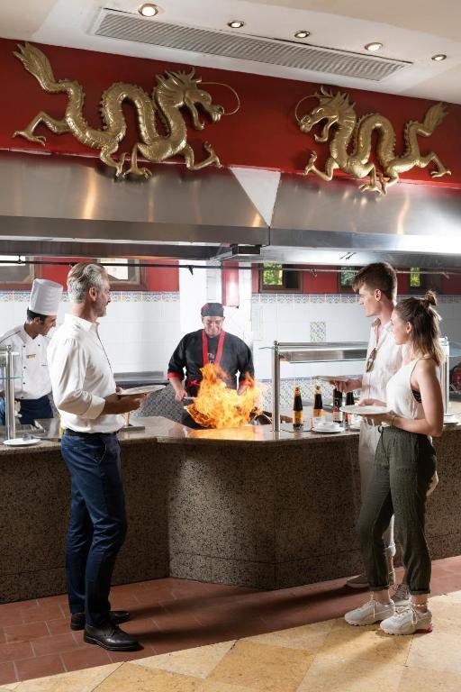 A belsejében előcsarnok, recepció (24 órás), széf, ATM, lobbibár, fodrász, kisbolt, üzlet, étterem és 3 bár, valamint WiFi (térítés ellenében) és internetsarok található (térítés ellenében). TV-szoba szintén rendelkezésre áll. A létesítmények között számos (ázsiai, olasz, nemzetközi, mediterrán és à la carte) étterem is működik, terasszal és légkondicionálóval. A medence a kertben található, és számos medencét (szezonálisan fűtött), külön gyermekmedencét, gyermek csúszdát és több csúszdát, valamint egy medencebárt (az évszaktól függően) tartalmaz, és napozóterasz veszi körül. A strandon és a medencénél napágyak,napernyők , törölközők állnak rendelkezésre. A tengerparti bárban (az évszaktól függően) harapnivalókat és frissítőket fogyaszthatnak a vendégek.