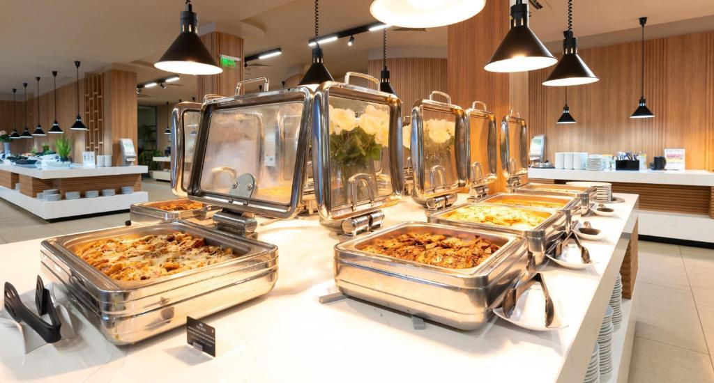 A légkondicionált étterem hagyományos bolgár ételeket és válogatott európai fogásokat kínál.