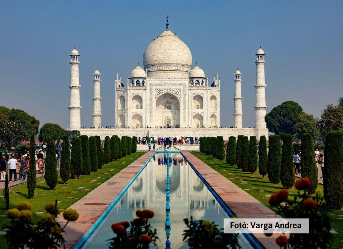 Agra, a mogul császárok néhai fővárosa, India és egyben egész Ázsia egyik leghíresebb építészeti műemléki helyszíne. Reggeli után meglátogatjuk a Taj Mahalt, amelyet Shah Jahan szeretett felesége, Mumtaj Mahal emlékére épített. Huszonkét évbe és több mint húszezer munkás kemény munkájába telt a Taj Mahal megépítése. A Taj Mahal szépsége elbűvölő, és tükrözi a mogul korszak művészetének és építészetének gazdagságát. Délután látogatás az UNESCO világörökségi Agrai (Vörös) Erődben. A Yamuna folyóra néző félkör alaprajzú erőd mérete 380.000 m2 falainak magassága mindenütt meghaladja a 20 métert. A naplementét a Mahtab Bagh császári kertből nézzük, ahonnan a Taj Mahal mesés látványt nyújt.