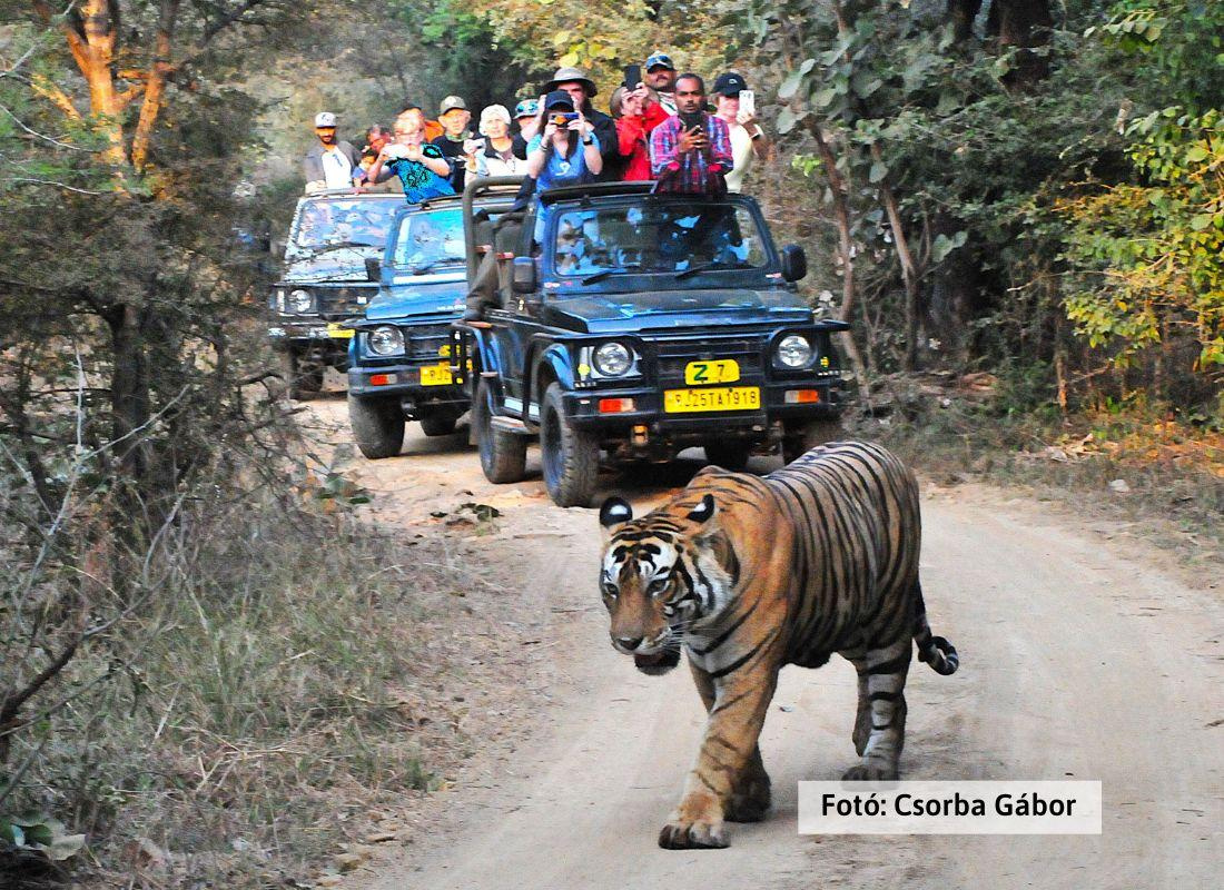 Egész napos „tigris és nagyvad vadászat”, távcsővel és fényképezővel, terepjáróval, helyi vadőrök irányításával. A kora reggeli szafari kapunyitáskor indul, a nap közepén kb. 3 órás pihenés áll rendelkezésre resortunkban. A pihenő alatt a Project Tiger 2022. (vagy, ha már rendelkezésre áll 2023.) évi jelentésének közös tanulmányozása, angol-magyar fordításban. A délutáni szafari kapuzárásig tart. A vacsora alatt a nap során megélt nagyvad élmények felelevenítési lehetősége, illetve a Project Tiger adatok további megvitatása.