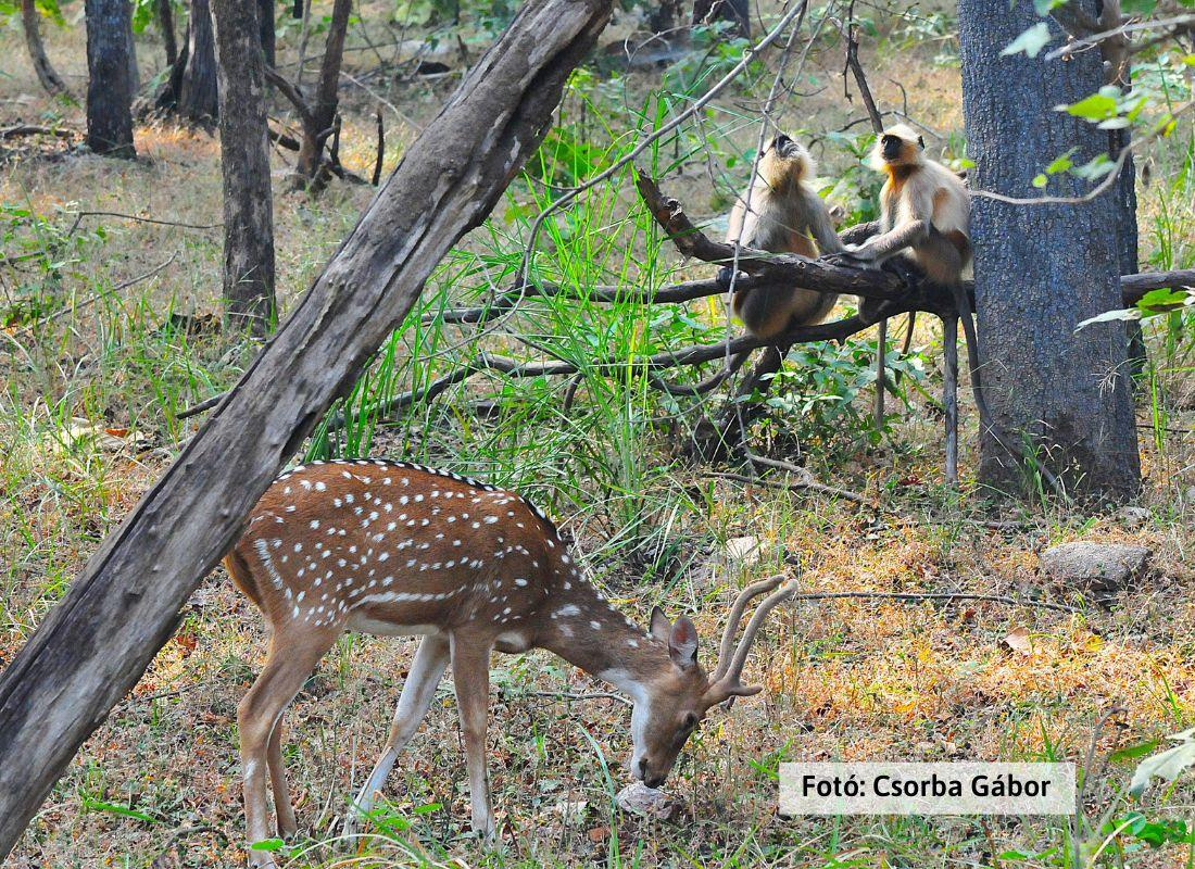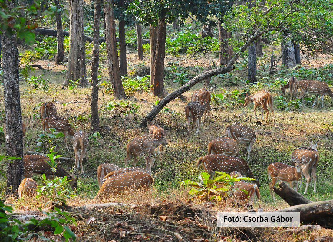 Kora reggeli ébresztő és reggeli után délelőtti jeep szafari a királytigrisek nyomán. A Kanha Nemzeti Park egész Ázsia legnagyobb tigris rezervátuma, így itt is igen jó az esély, hogy megpillantsuk az akár 250 kg (!) tömegűre is megnövő óriás macskákat. A 100-110 cm marmagasságú csíkos csúcsragadozók hozzászoktak az ösvényeken mozgó, négykerekű, büdös és ehetetlen fémjószágokhoz, így, ha meglátnak minket, nem menekülnek, vagyis szerencsés esetekben igen jól fotózhatók. Pihenő a déli órákban kb. 3 órán át a szafari bázison. Délutáni kutakodás a tigrisek után, nagyvad és majomfotózással. A Kanha vadonja nem csak nagy ragadozókban bővelkedik. A növényevők legimpozánsabb képviselői a szigorúan védett mocsári szarvasok (barasingha) és az óriási gaurok. (A gaur a Föld legnagyobb vadon élő szarvasmarha féléje. Az indiai bölényként is titulált állat marmagassága 170 – 220 cm, tömege elérheti a 10 mázsát is.) Este a látottak értékelése – remélhetőleg a tigris fotók összehasonlításával – majd közös vacsora.