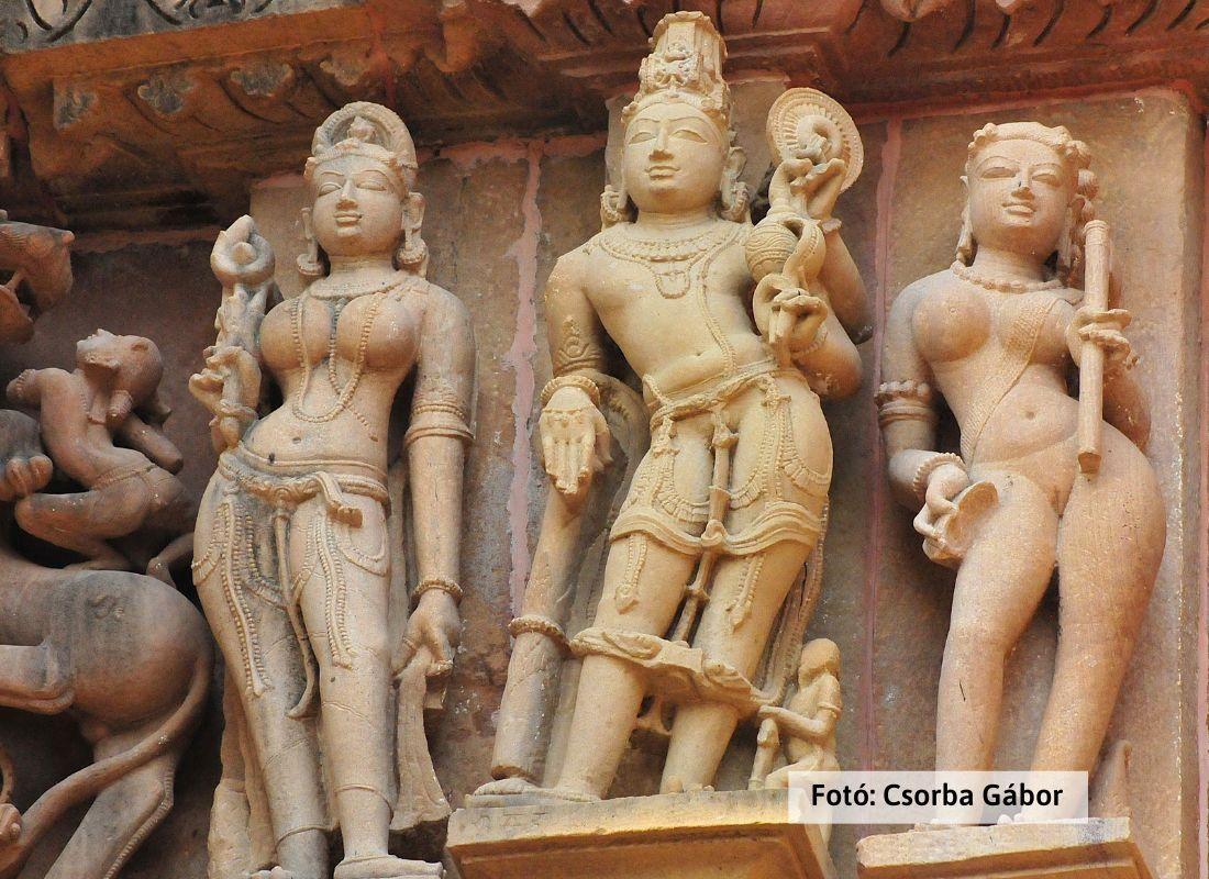 Reggeli után utazás Khadzsuraho-ba. Menet közben ismertetés a Csandéla uralkodók koráról, a 10. századi templomépítésekről. Szigorúan közmegegyezésen alapuló mértékek szerinti előkészítés a világ leghíresebb, a „szemérem kora előtti” templomaival és az ott látható igen buja jelenetsorokkal kapcsolatban. Megérkezés után az épületegyüttesek bejárása. A 950 – 1050 között felépített hindu templomok Keleti-; Nyugati- és szórt csoportrészekből állnak. Sétánkat a Keleti-csoport műemlékremekeinél kezdjük: Brahma, Vamana és Javari templomai, majd a három Jain szentély. Sétánk a Nyugati-csoport épületeinél: Lakshmana- Matangesvara és a Varaha templomoknál folytatjuk. Programunk végén a Visvanatha és Nandi komplexumot, a Chitragupta templomot és a Kandariya Mahadeva együttest nézzük meg. A leghíresebb mithuna-párok és mithuna-csoportok fotózási lehetősége. Szállás Khadzsuharóban (1 éj).