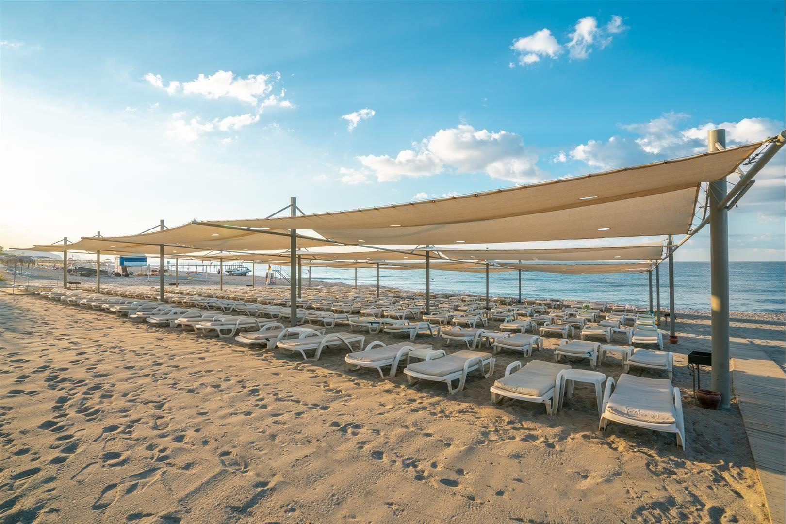 A privát homokos-kavicsos strand a szállodától 100 m-re található, a szállodával szemben, egy földalatti átjárón keresztül érhető el.