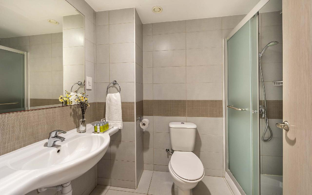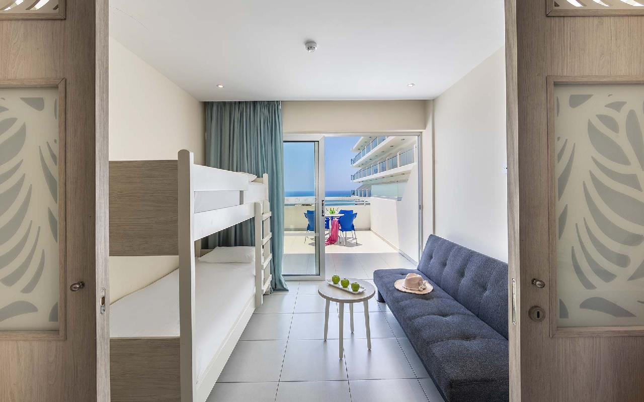 Szobák: minden szoba komfortosan berendezett, egy hálószobás (~22 m2), légkondicionált, fürdőszobás, hajszárítóval, síkképernyős tv-vel, minibárral, vízforralóval (kávé és teafőzési lehetőség), telefonnal és széffel felszerelt. Minden szobához erkély tartozik szárazföldre, oldal tengerre vagy tengerre néző kilátással. A családi szoba felszereltsége azonos, azonban nagyobb alapterületű (~30 m2), kétszobás, egy hálószobával és egy nappalival rendelkezik, a két szoba tolóajtóval elválasztható egymástól. A családi szobához erkély tartozik, tengerre néző kilátással.