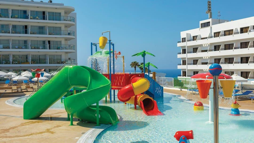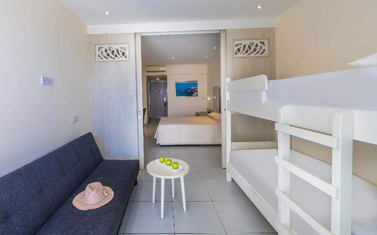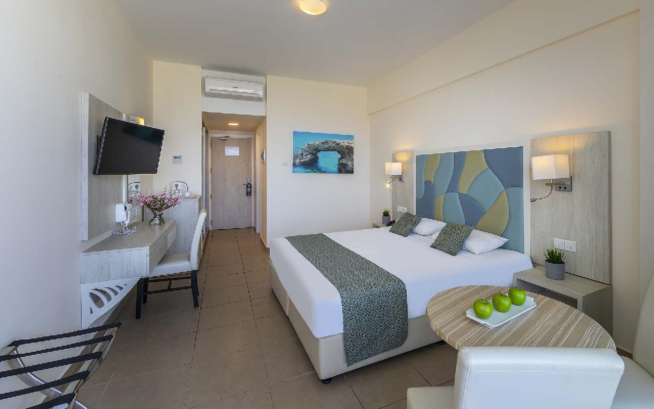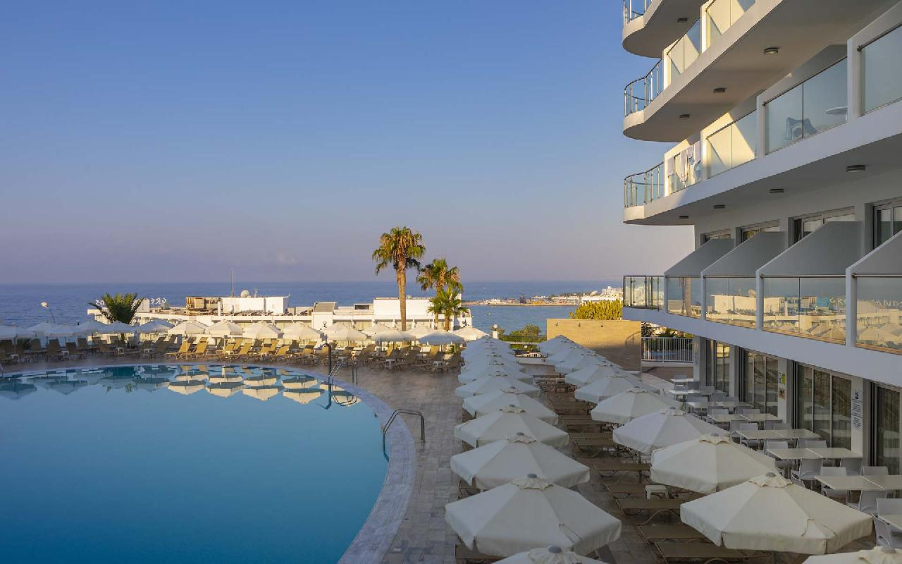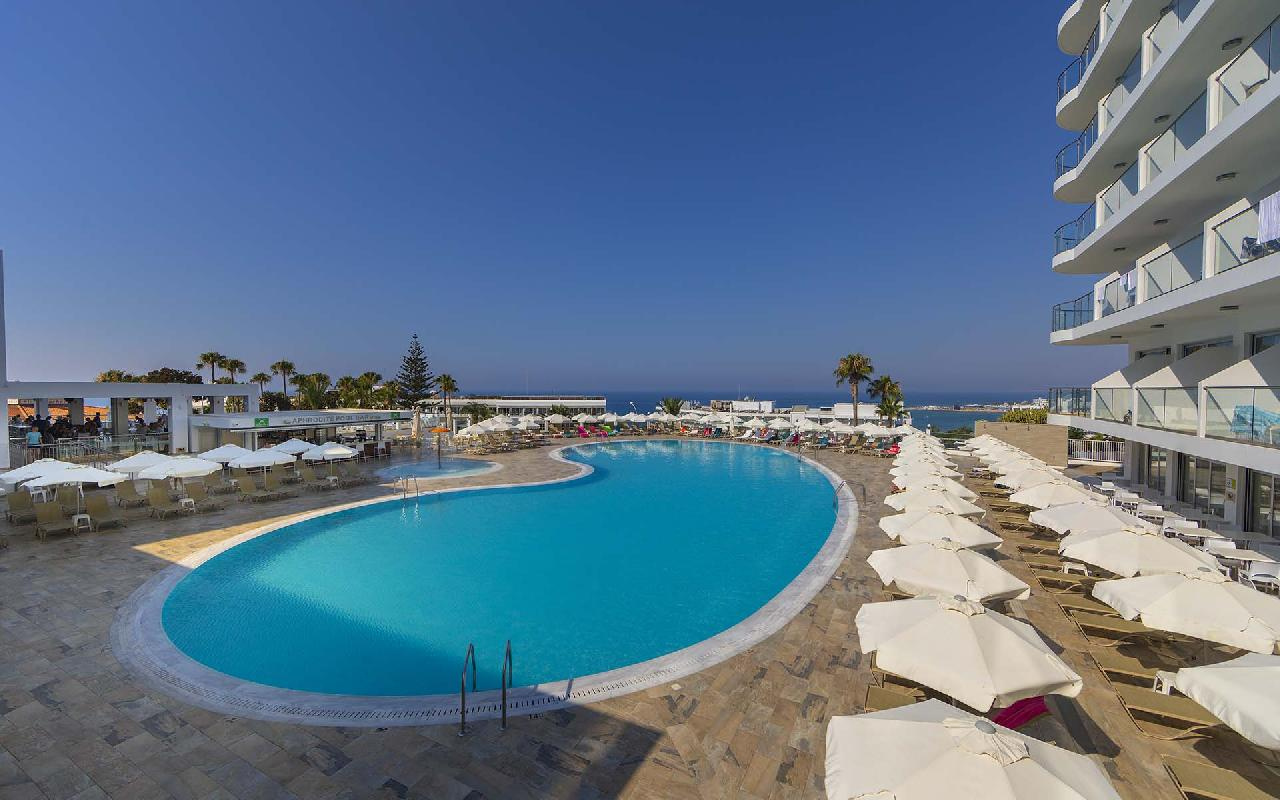 Családbarát szálloda Ayia Napa népszerű tengerparti üdülőhely lankásabb részén, a Grecian Bay nevű öbölben, egy kiugró sziklaszirten, enyhén emelkedő területen található, csupán 450 méterre a gyönyörű Grecian Bay homokos strandjától.