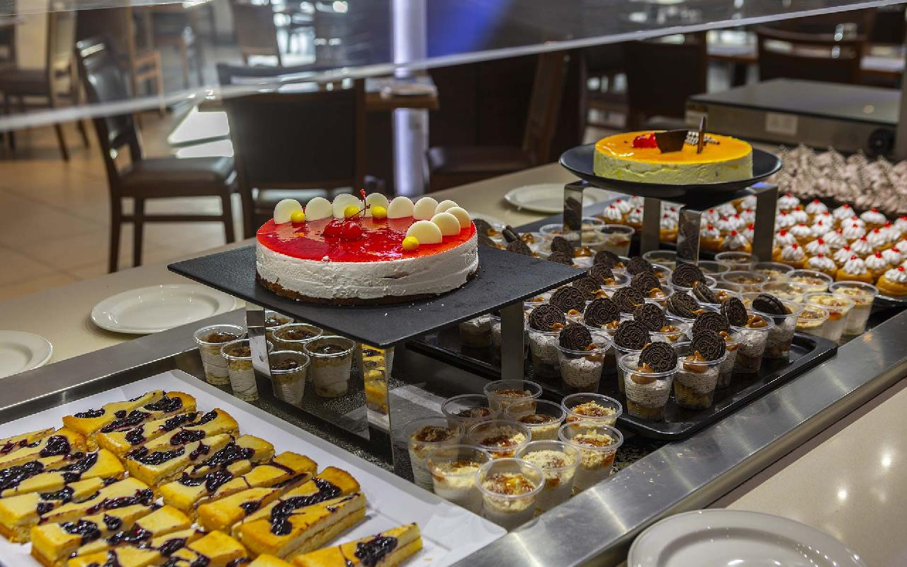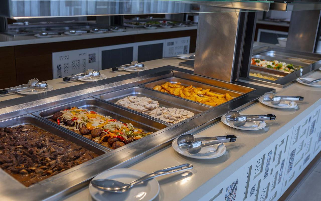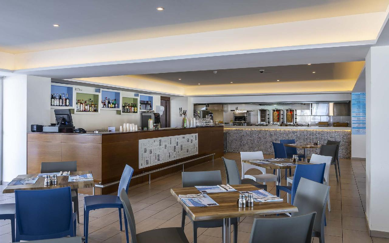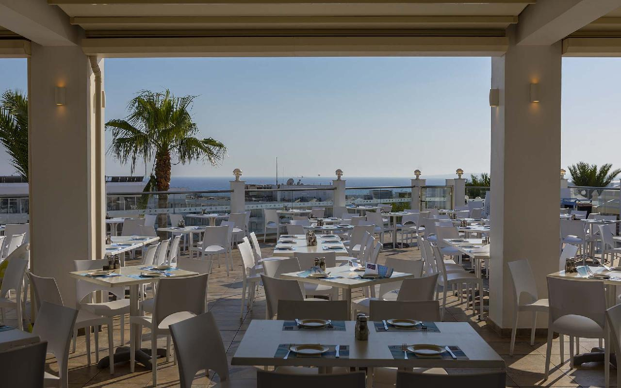 Étkezés: all inclusive ellátás, benne: büfé reggeli (07:30-10:00), ebéd (12:30-14:30) és vacsora (19:00-21:30), snack ételek és szendvicsek (11:00-12:30 és 15:00-18:00 óra között), jégkrémek, korlátlan italfogyasztás 10:00–23:30 óra között. Az italválaszték pohárban felszolgálva, a szálloda által meghatározott helyi és alkoholos és üdítőitalokra, vízre és gépi kávéra vonatkozik. Az import és palackozott italok fogyasztása térítéshez kötött. Minden este választékos tematikus büfé vacsorákkal (olasz, ciprusi, ázsiai, mexikói stb.).