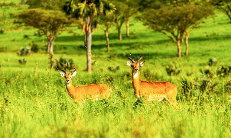 Murchison Nemzeti Park: Az Albert-tó és a Fehér-Nílus határolja több mint 5700 négyzetkilométeres területét. A parti élővilág nagyon gazdag: bivalycsordák, elefántcsaládok a parton és a vízben lubickolva, antilopok, oroszlánok, leopárdok, hatalmas nílusi krokodil és vízilovak sokasága nyűgözi le az embert. Nem beszélve a színes madarakról, melyeknek több mint 400 faja él ezen a vidéken, többek között a szürke koronás daru, mely az ország nemzeti madara. Itt él a Murchison-zsiráf, melynek jellegzetessége, hogy kb. 40 cm-rel magasabb az egyéb zsiráffajoknál és csoportosan kószálnak az akáciák között.