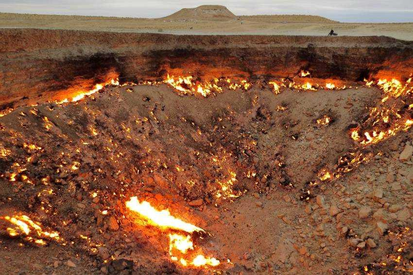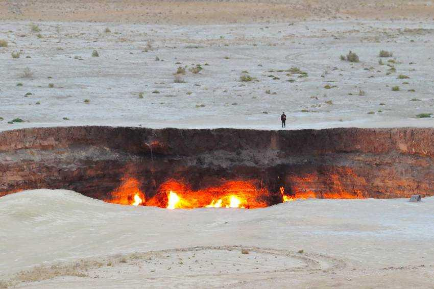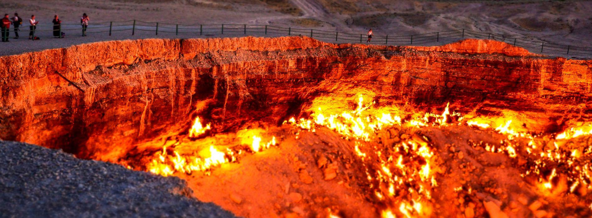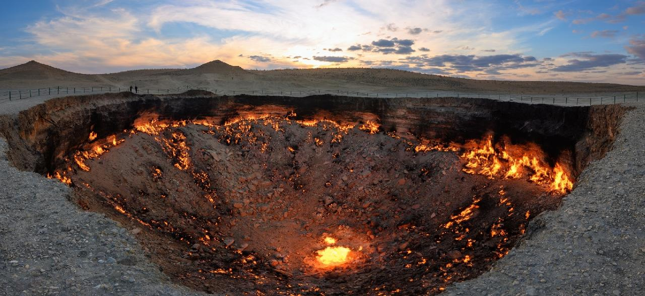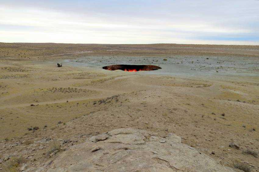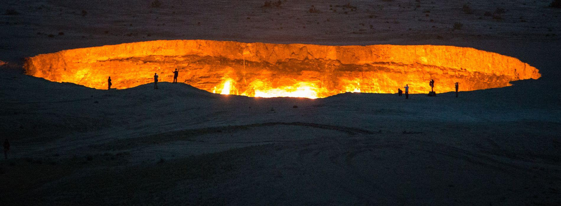 A „Pokol kapujának” mélyéről évtizedek óta lángok csapnak elő, a csillagos égbolt sötétjében hatalmas távolságról világít „Földünk tüzes lelke”. Az egészen elképesztő táj fényképezése. Nomád BBQ vacsoránk elfogyasztása sátortáborunkban, majd sötétedés után a lángoló kráter fényképezése. Éj a Kara-kum sivatagban, sátorokban.