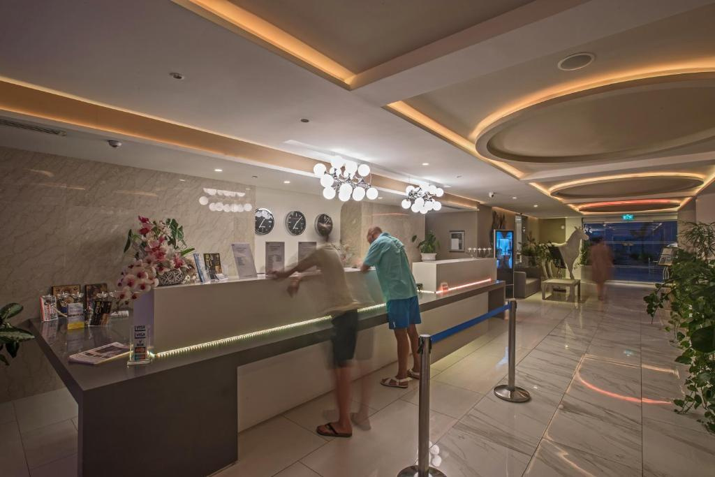 Szobák: minden szoba szépen berendezett, egy hálószobás (~22 m2) légkondicionált, fürdőszobás, síkképernyős tv-vel, telefonnal, hajszárítóval, vízforralóval, hűtővel és szobaszéffel felszerelt. A szobákhoz erkély tartozik szárazföldre, oldaltengerre néző vagy front tengerre néző kilátással. A családi szoba hasonlóan felszerelt és berendezett, egy kicsit nagyobb alapterületű (~25 m2) és a szobához tengerre néző erkély tartozik. A lakosztályok a szálloda legmagasabb komfortfokozatú szobái, ideálisak kisebb vagy nagyobb gyermekekkel érkező családok számára, azok az épület 3-4. emeletén találhatók, egy hálószobával és nappali rendelkeznek(~50 m2), erkélyükről fantasztikus kilátással a Nissi Beachre.