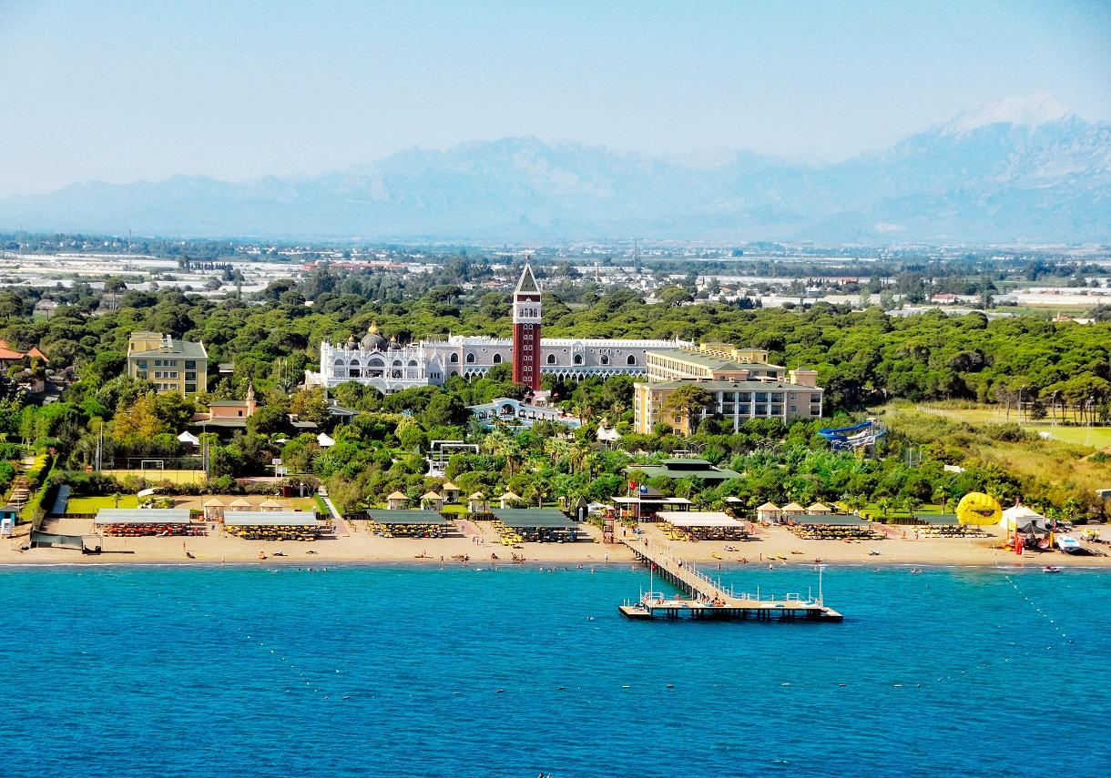 Fekvése: A Venezia Palace De Luxe Resort szálloda Lara üdülőterületen fekszik, antalyai nemzetközi repülőtértől kb. 15 km távolságra. A hotel egyedülálló atmoszférával mutatja be az olaszországi Velence városnának szépségeit Antalya területén, közvetlenül a tengerparton. A szálloda Velence mintájára épült.
