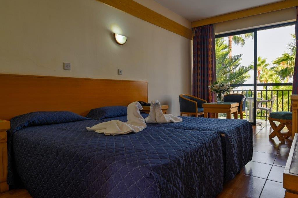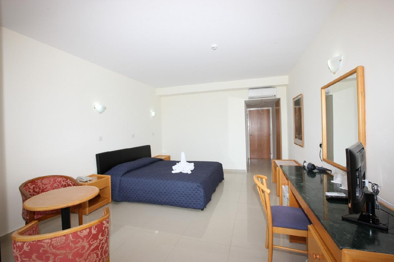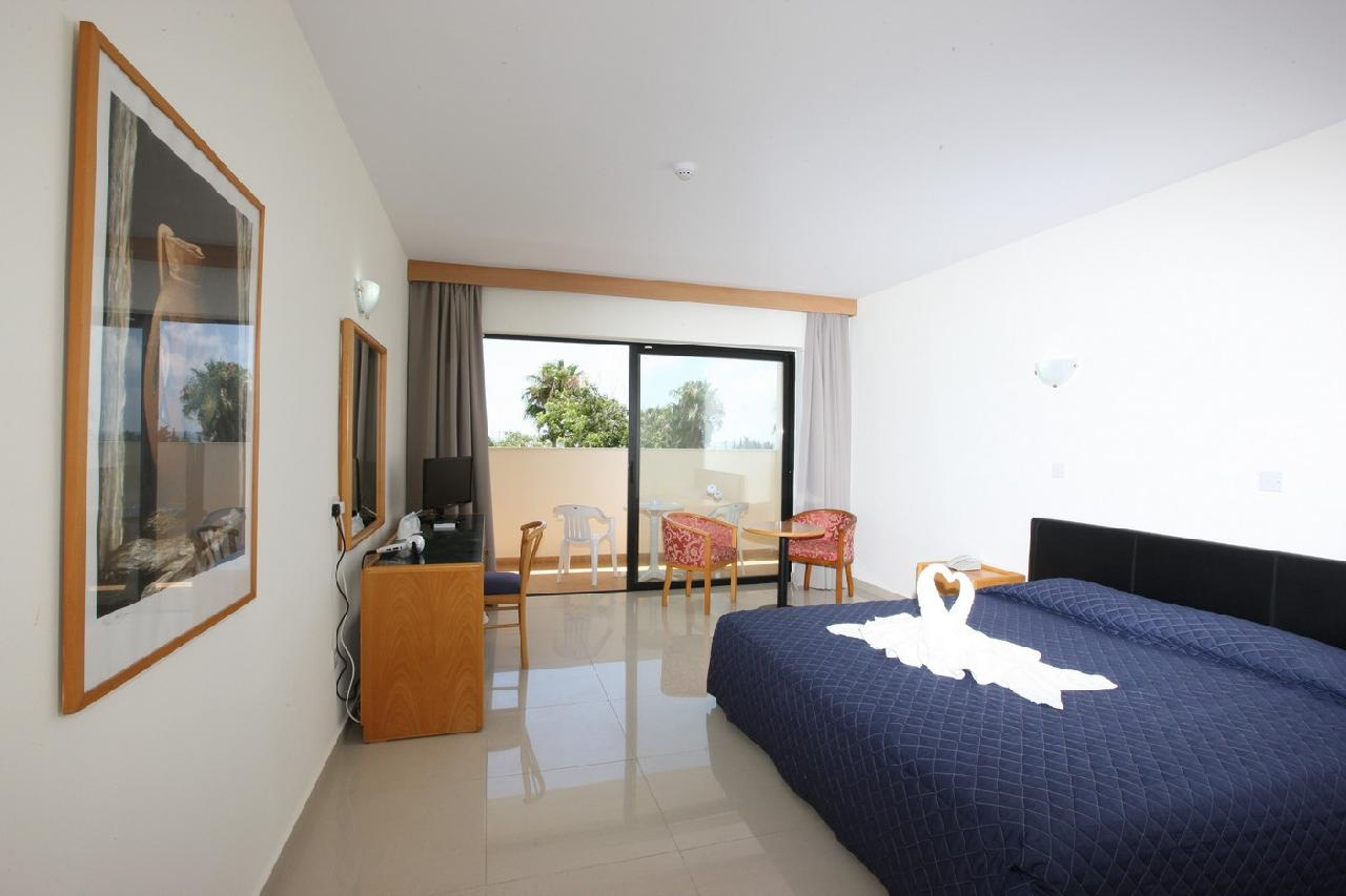 Fekvése: Paphos üdülőövezeti részén, a városközponttól kb.4 km-re épült, több épületből álló, népszerű száznegyvenhárom szobás szálloda. A tengerpart ötszáz méterre, a legközelebbi homokos helyenként aprókavicsos strand hétszáz méterre található a szállodától. Környékén éttermek, bárok, üzletek és szórakozási lehetőségek sokasága található. Buszmegálló a szállodával szemközt található.