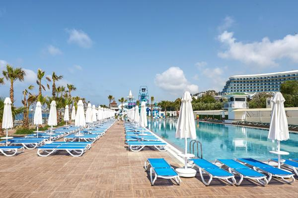 SZOLGÁLTATÁSOK: kültéri medencék napernyőkkel és napozóágyakkal • aquapark • főétterem • bár (strand) • nappali és esti animációs programok • diszkó • fitneszterem • TV-sarok • aerobik • gimnasztika • pilates • teniszpálya • asztalitenisz • darts • törökfürdő • szauna • gőzfürdő