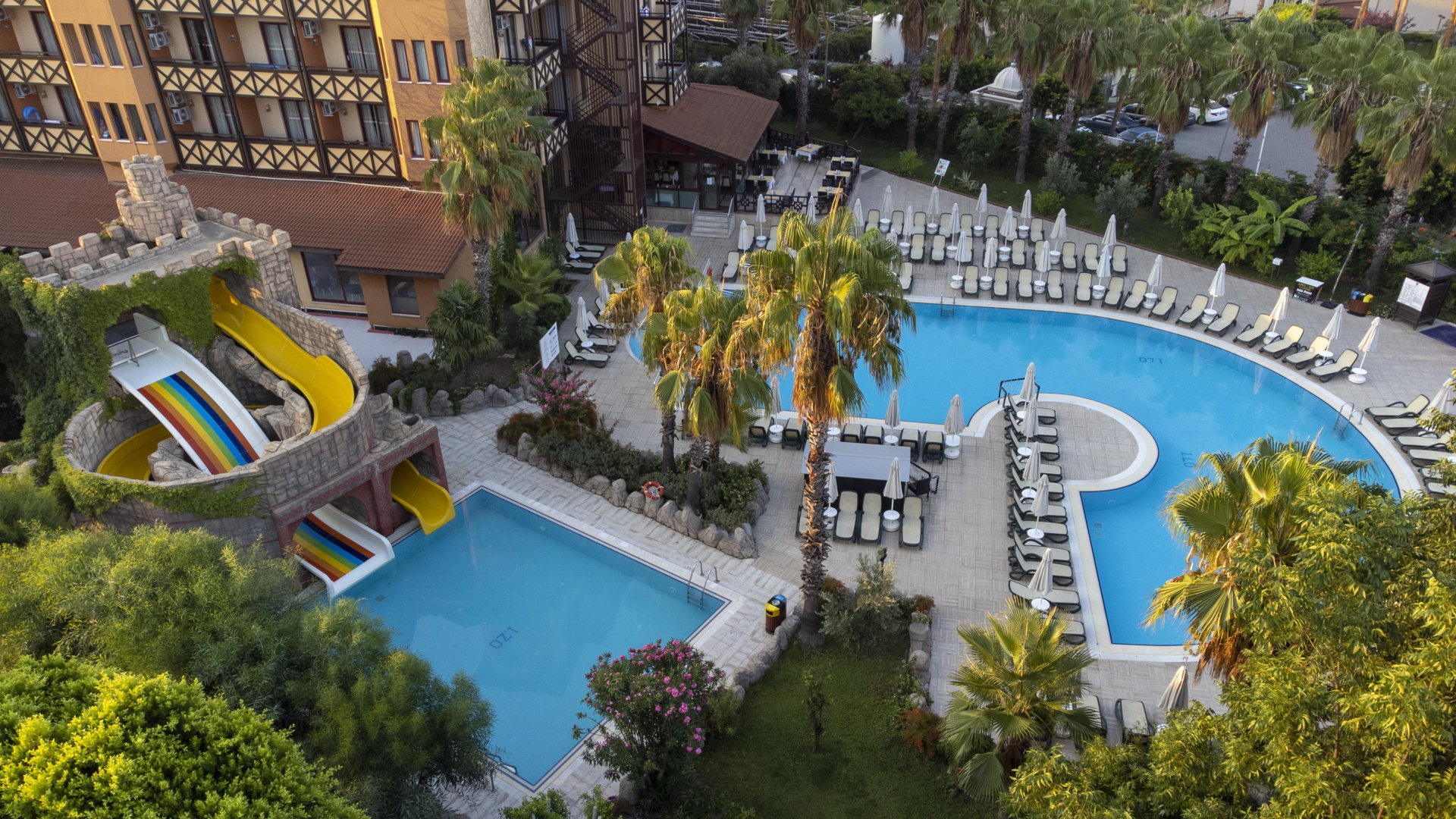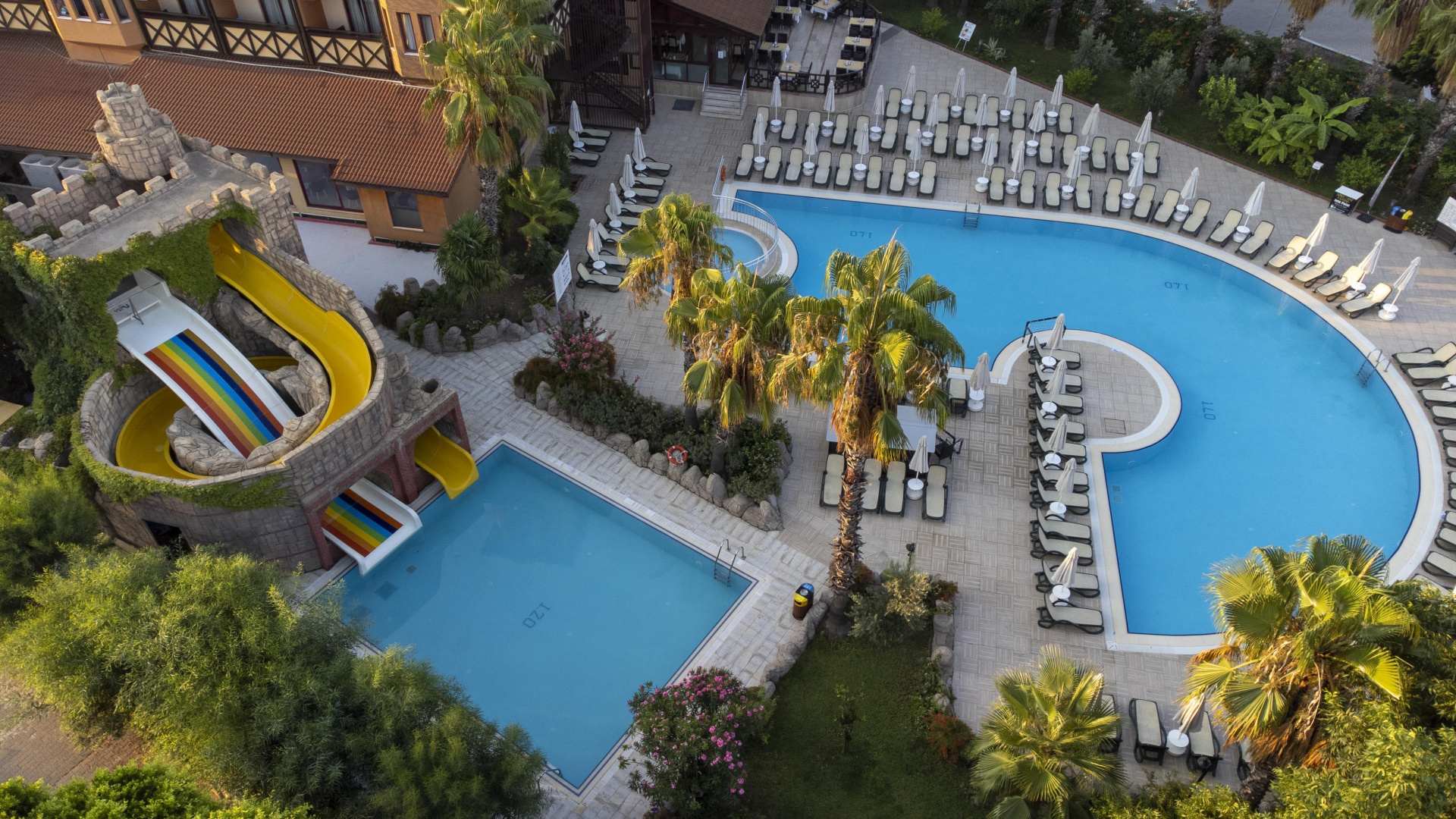 - 2 medence (az egyik 2 csúszdával), napágyak és napernyők ingyenesen)