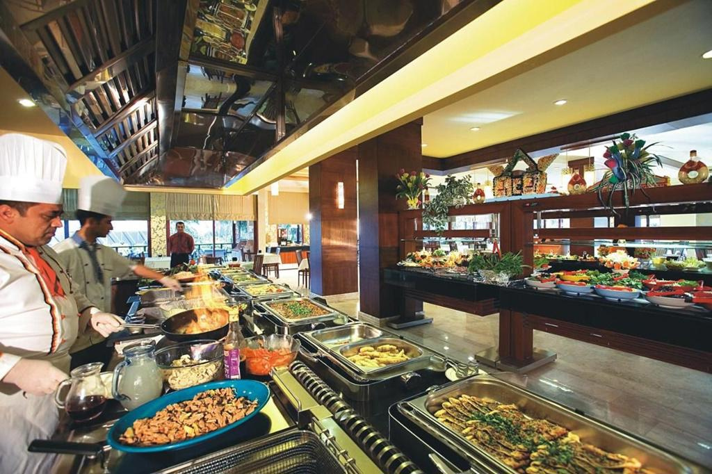 ELLÁTÁS: all inclusive • svédasztalos reggeli, ebéd és vacsora • késői reggeli • snackek • kávé, tea és sütemények • gözleme • fagylalt • minden helyi és néhány import alkoholos és alkoholmentes ital • minibár • térítés ellenében: bizonyos import és prémium italok, palackozott italok • à la carte éttermek (török, halas, olasz – előfoglalás szükséges)