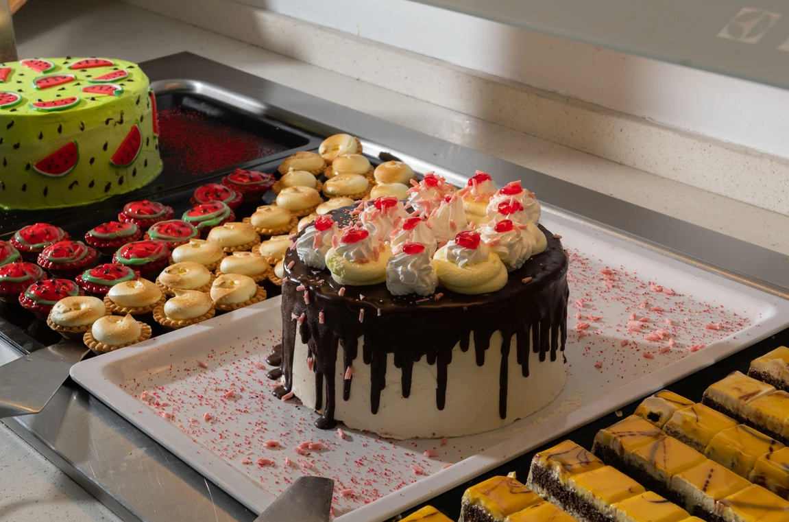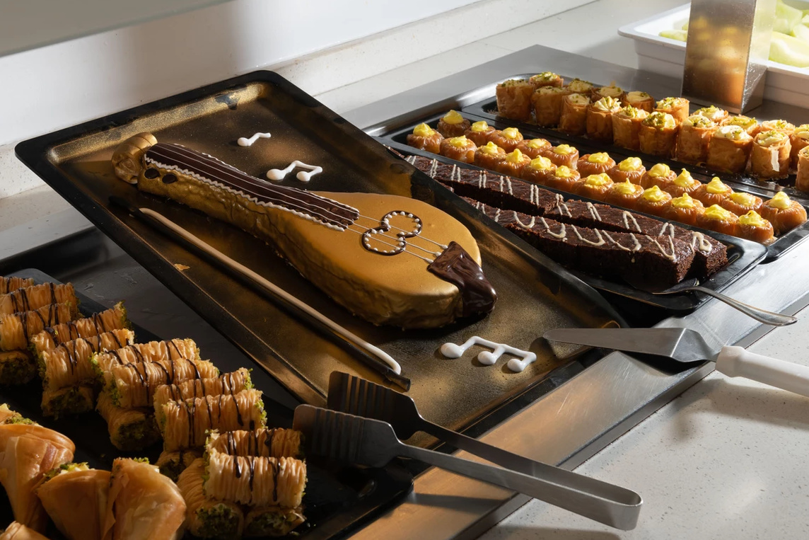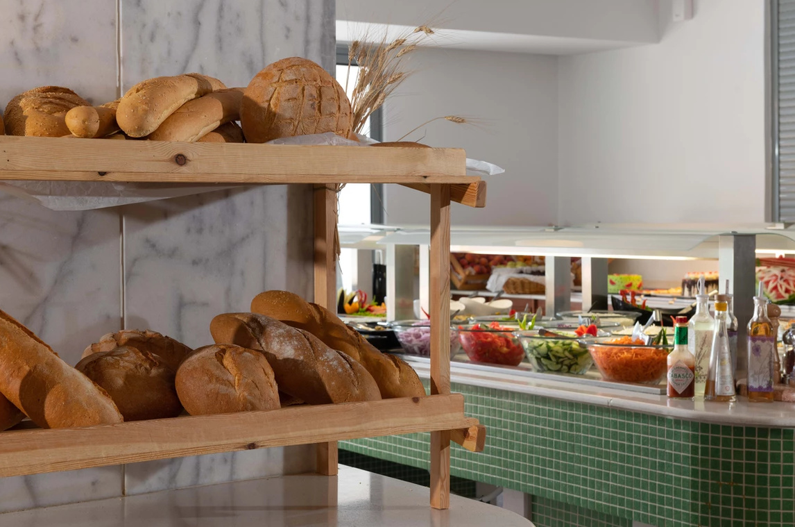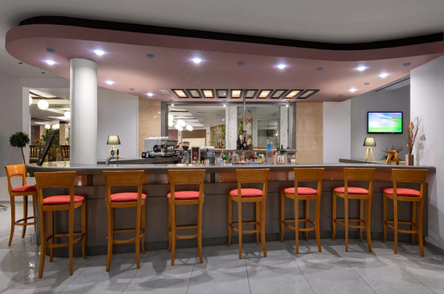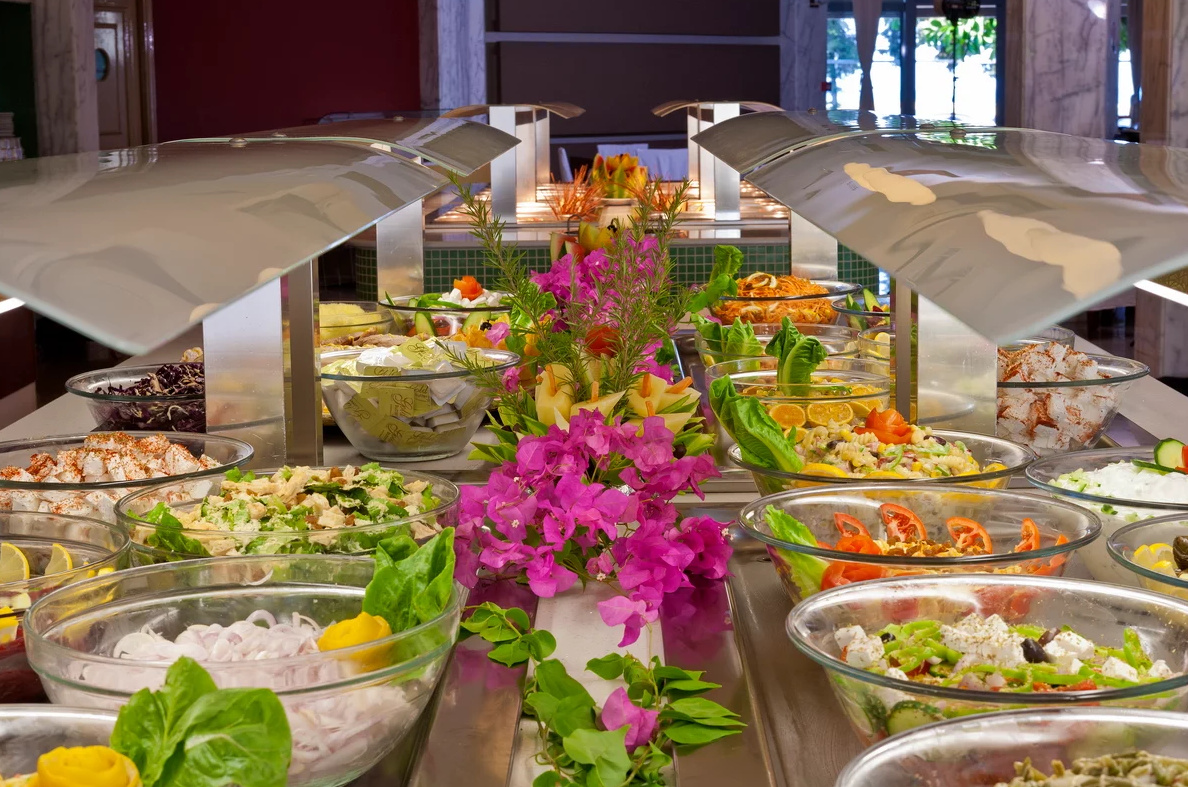 All inclusive ellátással foglalható, mely tartalmazza a reggelit, ebédet, vacsorát, illetve helyi alkoholos- és alkoholmentes italokat. Két tematikus éttermében (tradicionális görög ízek, halételek) a vendégek tartózkodásuk alatt egyszer ingyenesen fogyaszthatnak, melyhez előzetes foglalás szükséges. Napközben snackételeket, kávét, teát, süteményeket, fagylaltot kínálnak. A szálloda bárjaiban alkoholos italok fogyasztása 12:00 és 23:00 óra között lehetséges. Az import italok, valamint az ír- és arabica kávék térítés ellenében kérhetőek.