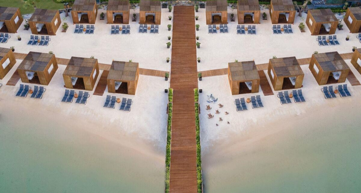 Homokos strand apró kavicsokkal és enyhe lejtéssel a tengerbe (vízicipő viselését javasoljuk), napozóágyak, napernyők és strandmatracok ingyenesen, strandkabinok felár ellenében, szállodai móló.