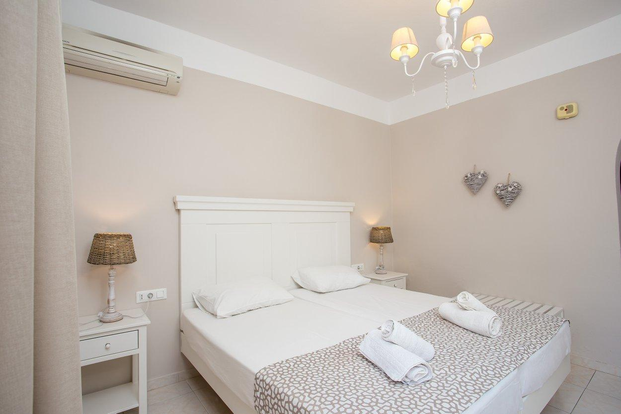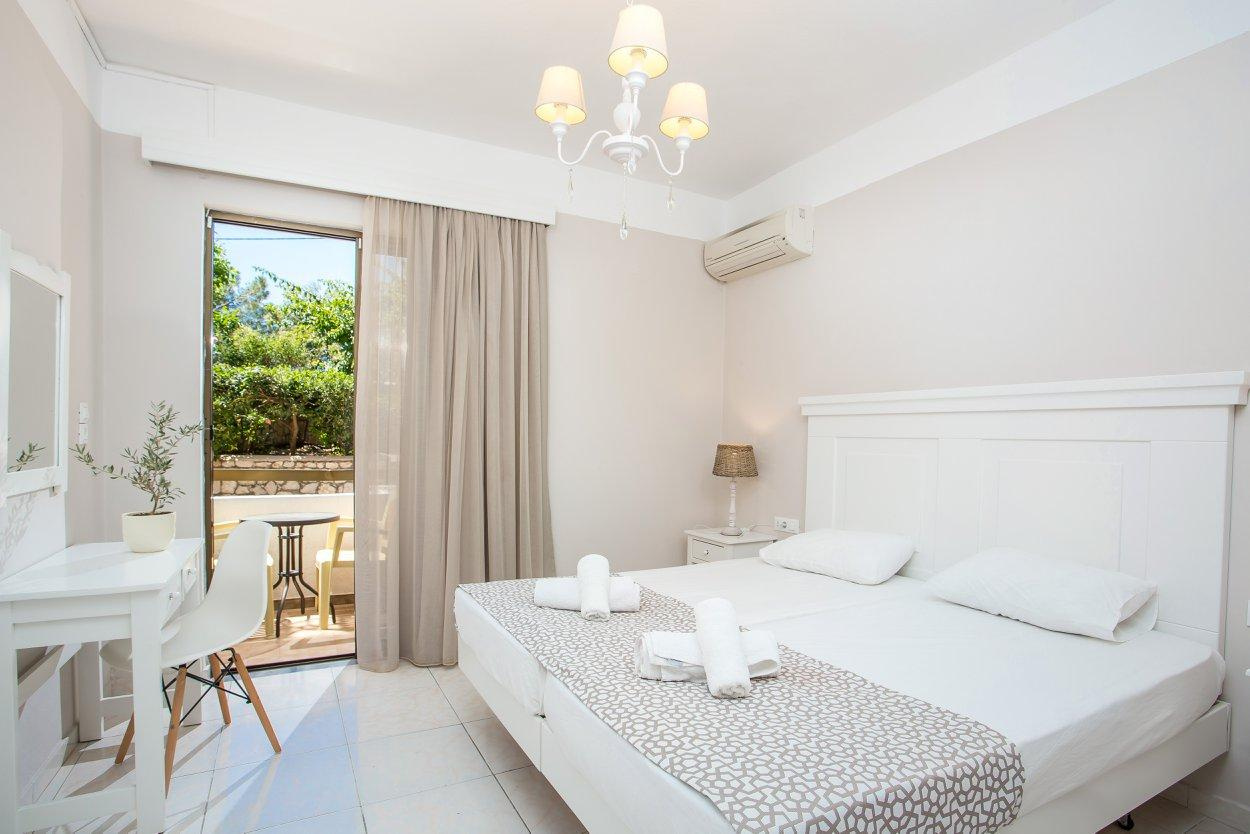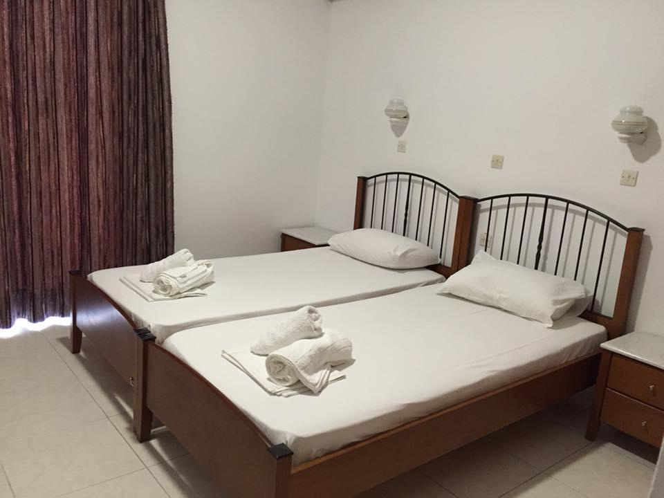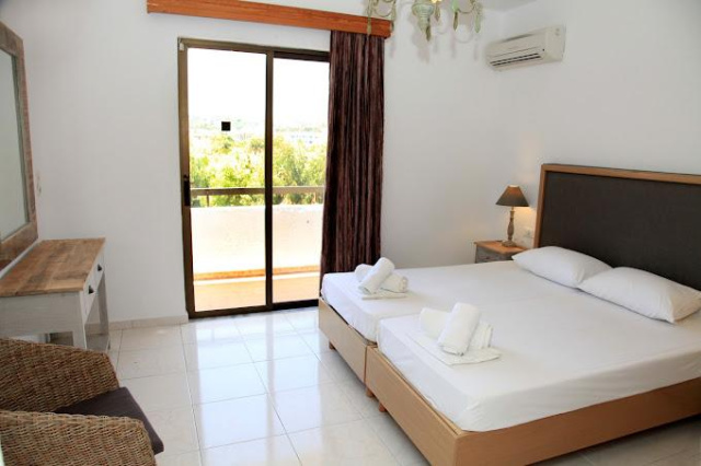 Szobák: Minden stúdió (2-3 fős ) és két hálószobás apartman , praktikusan berendezett, melynek felszereltségéhez légkondicionáló ( a helyszínen fizetendő felár ellenében ), konyhasarok a legszükségesebb eszközökkel felszerelve, fürdőszoba, balkon vagy terasz tartozik. Az egy- és kétágyas szobák is hasonló felszereltséggel rendelkeznek a konyhasarok kivételével.