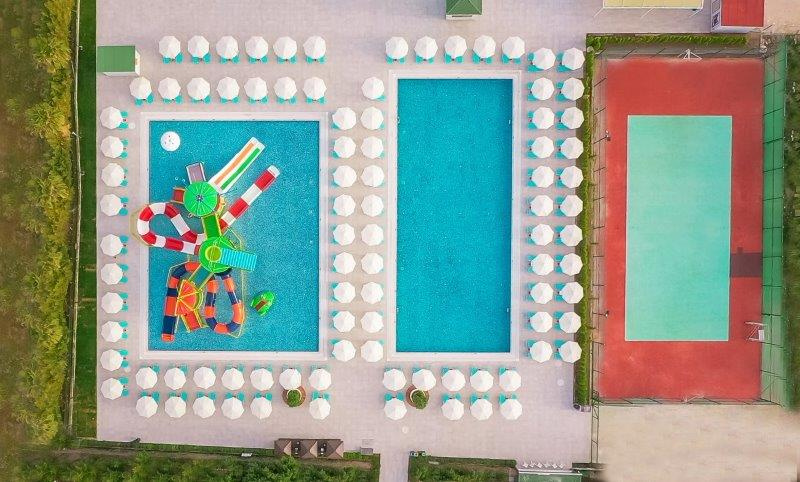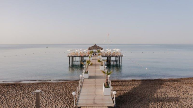 Fekvése: A 4 épületből álló, 2013-ban épült szálloda 14 km-re fekszik Antalya repülőterétől és 9km-re Antalya központjától, 330 m-re a homokos strandtól, ahová a szálloda ingyenes shutttle járatot biztosít. A környéken számtalan bazár és vásárlási lehetőség várja a vendégeket, de nyaralásunk során mindenképpen érdemes felkeresnünk a történelmi óvárost is! Kapcsolódjon ki, felejtse el a hétköznapi gondokat és élvezze a felhőtlen nyaralását! Szolgáltatások: Medence napozóágyakkal és napernyőkkel, medence 4 csúszdával, Aqupark a Beach Club-ban 4 csúszdával, miniklub (4-8 éveseknek) és maxiklub (8-12 éveseknek), minimozi, minidisco, játszótér, teniszpálya, fitneszterem, törökfürdő, szauna, gőzfürdő, kosárlabda, strandröplabda, darts, asztalitenisz, sakk, WiFi elérhetőség. A strandon napozóágyak, napernyők és strandtörölközők ingyenesen állnak a vendégek rendelkezésére. Térítés ellenében: Spa részleg kezelései, masszázsok, jacuzzi, szépségszalon, fodrászat, üzletek, teniszpálya világítás, mosoda, orvosi szolgálat, pavilonbérlés, vízi sportok a strandon. Elhelyezés: A 346 szoba mindegyike rendelkezik központi légkondicionálóval, műholdas TV-vel, telefonnal, széffel, WiFi elérhetőséggel, minibárral, vízforralóval, hajszárítóval és erkéllyel. A Standard szobák 30 nm-esek, max. 2 fő részére foglalhatók. A Superios szobák 35 nm-esek, max. 3 felnőtt és 1 gyermek részére foglalhatók. A Családi lakosztályok 70 nm-esek, 2 szobával és nappalival felszereltek, max. 5 felnőtt és 1 gyermek részére foglalhatók. Az 5. és 6. fő részére kanapéágy ill. kinyitható pótágy áll rendelkezésre. Ellátás: Ultra All Inclusive: Reggeli, ebéd és vacsora büférendszerben, kései reggeli, gyermekbüfé a főétkezéseknél, napközbeni snackek, éjjeli snackek (01:00-06:00, a szomszédos Ramada Resort Lara testvérszállodában), 5 a’la carte étterem (hal és tengergyümölcsei, olasz és mediterrán, török, ázsiai és mexikói, a tartózkodás során egy alkalommal, előzetes asztalfoglalással), gözleme, pide és fagylalt bizonyos időpontokban, helyi és néhány import alkoholos és alkoholmentes ital (24 órában), minibár üdítőkkel és vízzel naponta feltöltve. Térítés ellenében: Import és palackozott italok, BBQ a’la carte, szobaszervíz.Egyéb:
