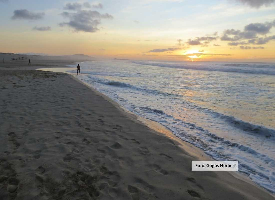 Elutazás Boa Vista-szigetére helyi repülőjárattal, útközben néhány szóval a Szahara természeti viszonyairól, illetve arról, hogyan kerülhetett egy darabkája 450 km távolságra… az Atlanti-óceán „közepére”. (?!) A 632 km2 méretű (A Szentendrei-sziget 11,5 X férne el benne) sziget igazából 7 óriási arany-, és fehér homokos partszakasz együttese, központi területein hamada (köves sivatag) jellegű tájjal, illetve a hófehér dűnés Deserto de Viana-sivataggal. Boa Vista lakossága is „arábiai sűrűségű”, mert kevesebb, mint 15.000 fő. A sziget egyetlen nagyobb városa Sal Rei (Só Királya), korábbi nevén Porto Inglês. Hófehér homokos strandjai, partmenti dűnéi és türkizkék, mindig lágyan meleg vizei az utóbbi 30 évben kerültek a nyaraló;- horgász és búvár utaztatás fókuszába. Szállásunk is a Praia de Chaves föveny mesés és végtelen, aranyhomokjának, kristálytiszta türkiz vizének köszönhette születését, a szinte érintetlen környezetben. Bejelentkezés resortunkba, a létesítmények és az óceánpart felfedezése, All inclusive ellátásunk részleteinek egyeztetése. Közös vacsora. Éj a VOI Praia de Chaves Resortban.