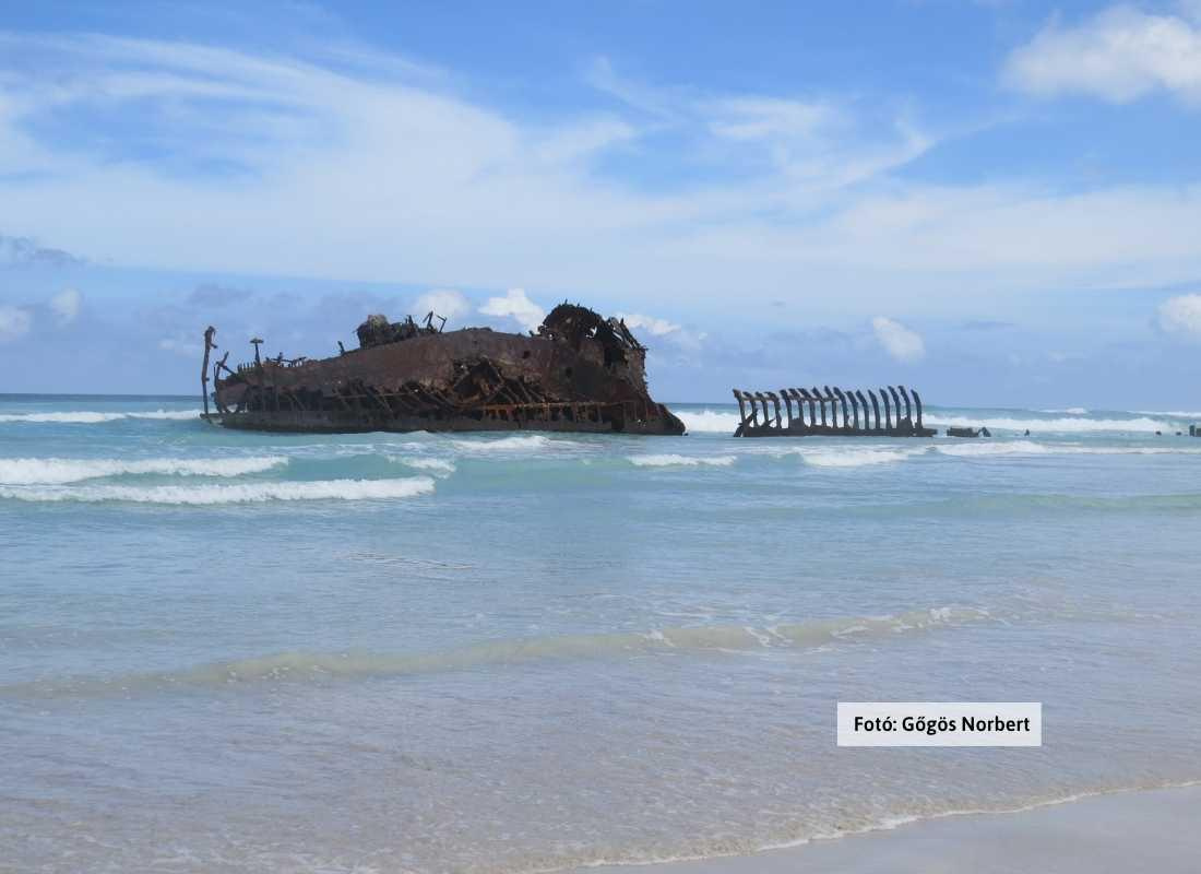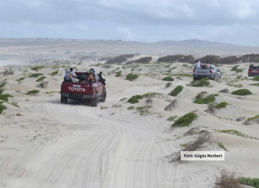 2. 4 órás a Santa Maria foktól a Viana-sivatagig kirándulás: Rövid közös séta Sal Rei belvárosában, az Ilhéu de Sal Rei-sziget fényképezésével. Rövid sivatagi séta a Deserto de Viana-sivatag központi dűnéin. Továbbutazás a Praia da Atalanta strandjához, a híres Cabo Santa Maria roncshoz. Pár szó a sziget körüli zátonyokról és a nevezetes hajótörésről. Az utazás kiváló alkalom arra, hogy néhány 20. századi eseményről, társadalmi folyamatról is szót ejtsünk, mint pl. a Portugál gyarmati háború (1961-1975) eseményei és Cabo Verde függetlenné válásának körülményei. Visszaérkezés a resortunkba a déli órákban, majd szabadidő. (58 EUR/fő) Éj a VOI Praia de Chaves Resortban.